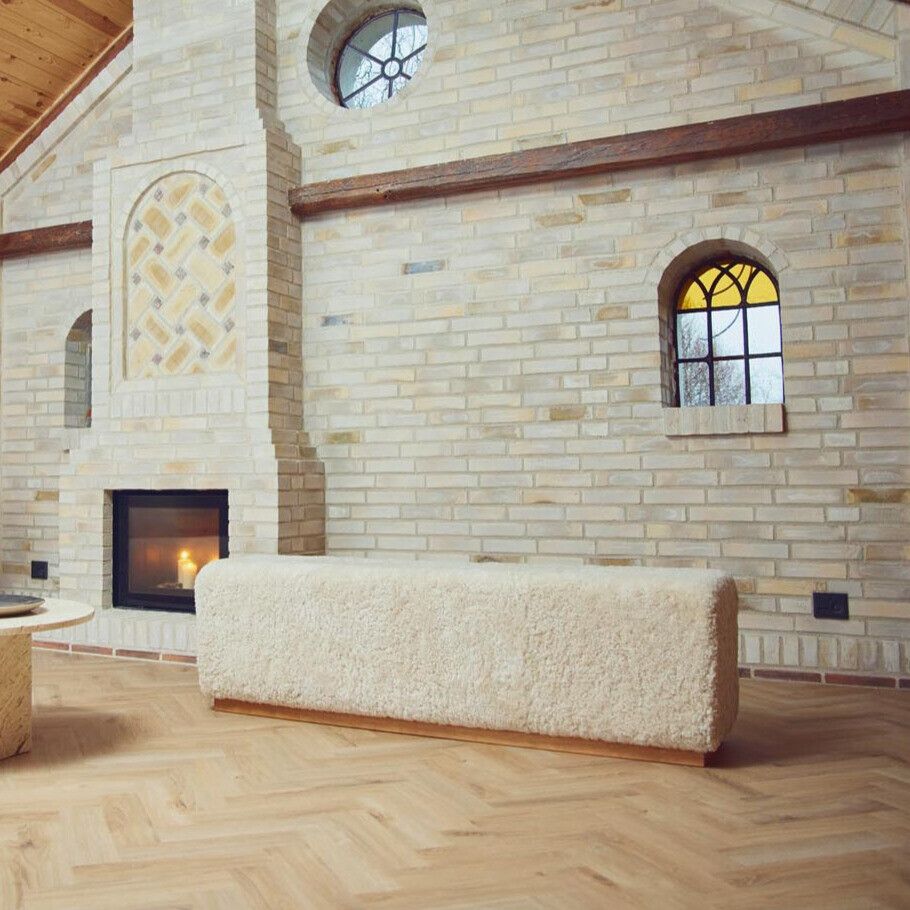 Benjamin benk, et møbel som forener naturlige materialer med moderne design. Benken er laget av høykvalitets eik eller valnøtt og er trukket med det mykeste saueskinn – en unik kombinasjon av varme, komfort og tidløs stil.